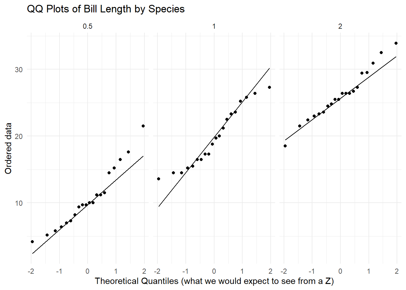 x = "Theoretical Quantiles (what we would expect to see from a Z)",