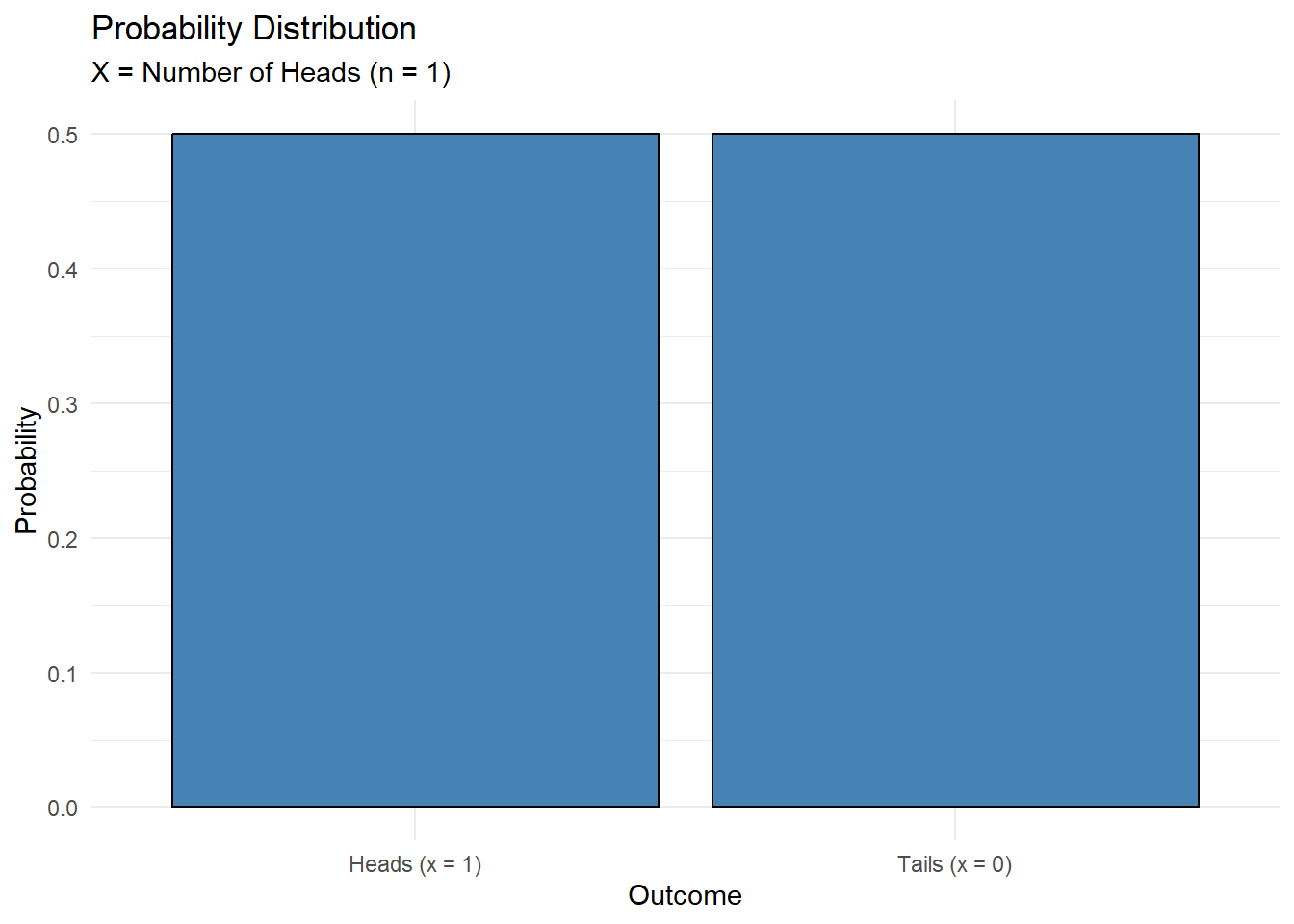 P(H) = P(X = 1) = .5