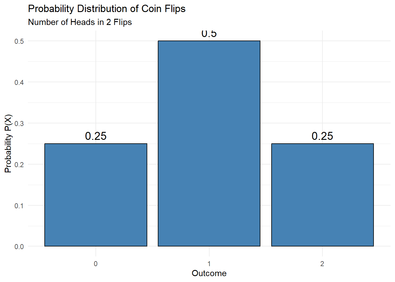 P(2 heads) = P(X = 2) = .25