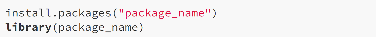 Packages are installed with the install.packages function and loaded with the library function, once per session: