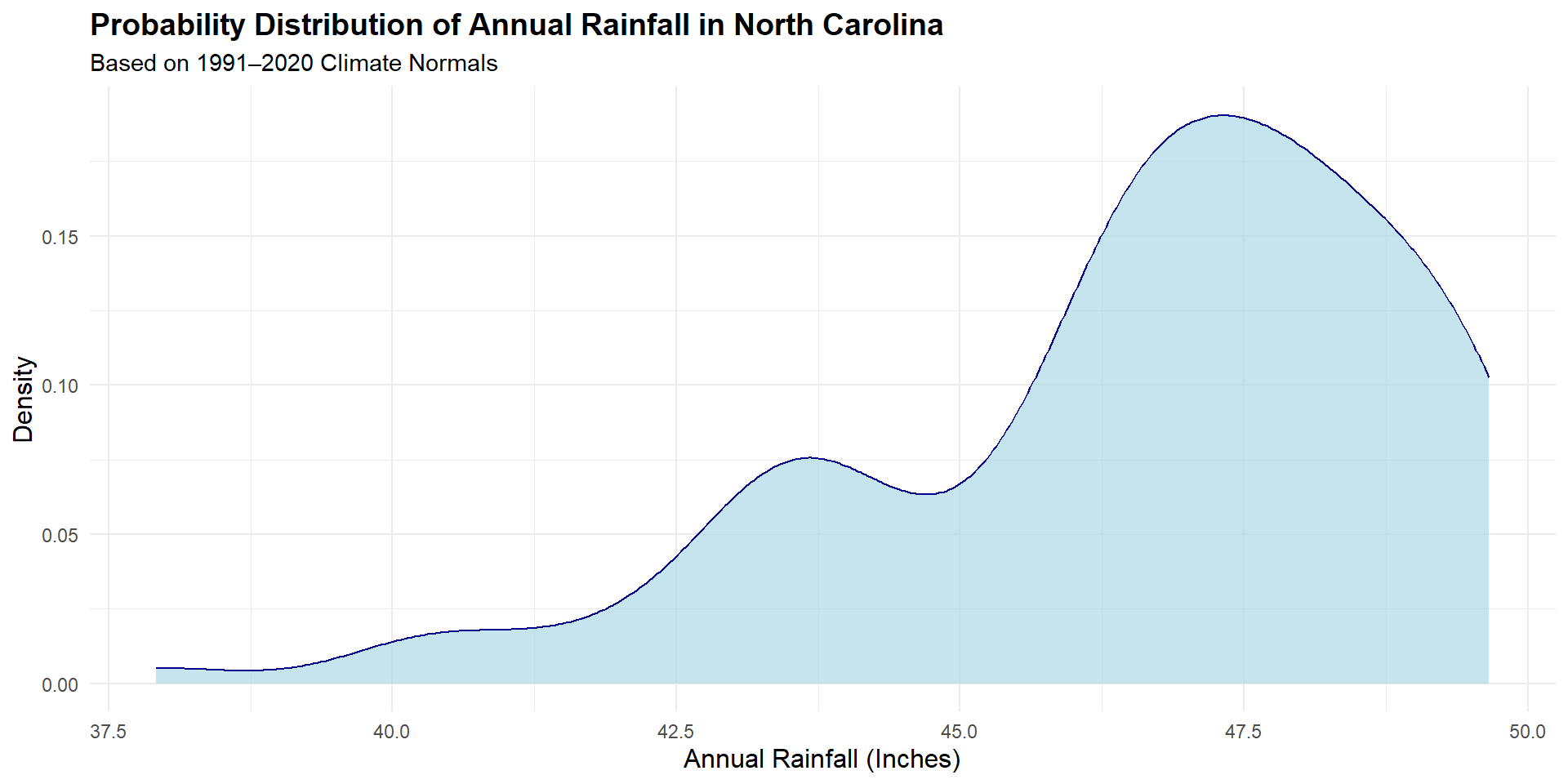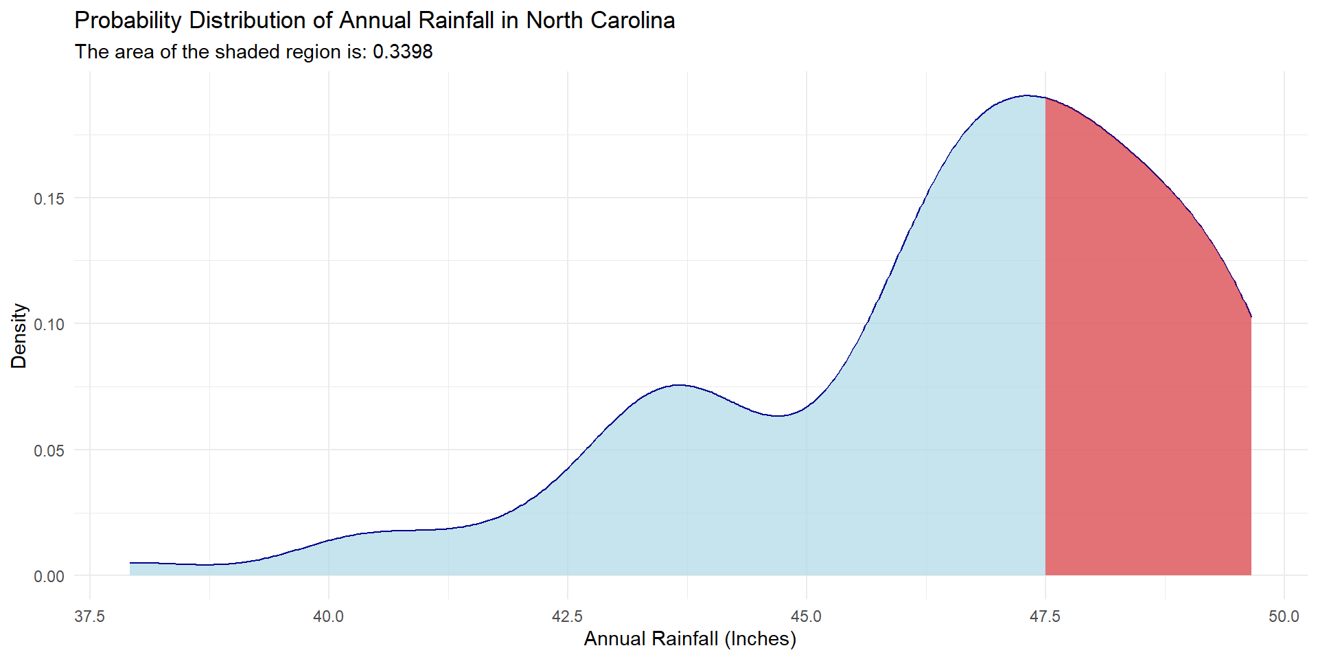 What’s the probability that it rains exactly 47.5 inches this year in NC?