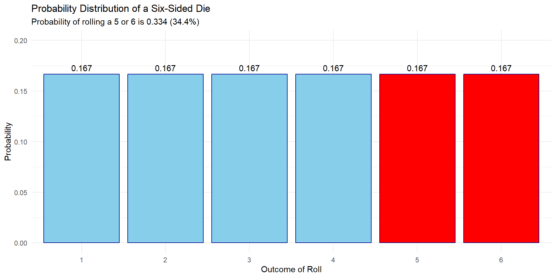 What’s the probability of rolling a 5 or a 6 on a 6-sided dice?