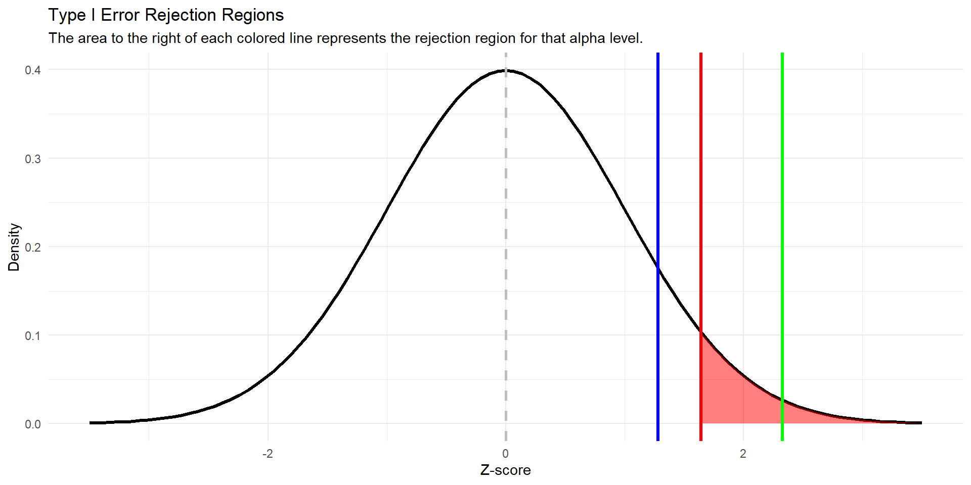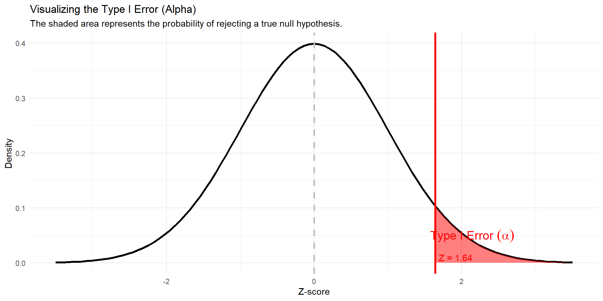 \(\alpha\) is the probability of rejecting the null hypothesis when the null hypothesis is actually true.
