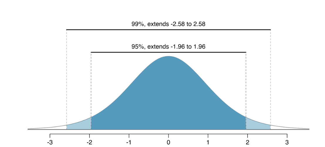 Show, using qnorm, the z* cutoff values for 90%, 95%, and 99%