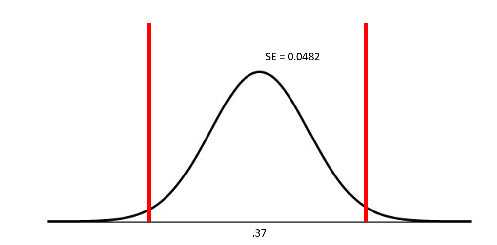 \[ SE(\hat{p}) = \sqrt{\frac{.37*.63}{100}} = 0.0482 \]
