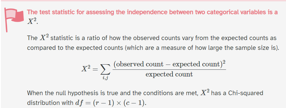 \(\chi^2\) = map of possible outcomes on the chi-sq distribution (random variable because it is generated from a random process)