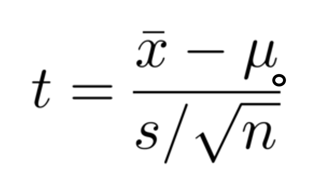 \[ \left| \frac{\bar{x}_1 - \mu_o}{SE} \right| > t^* \]