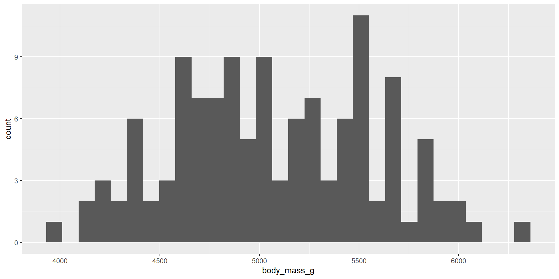 We wanted to look at Penguin’s bodymass for the Gentoo species.