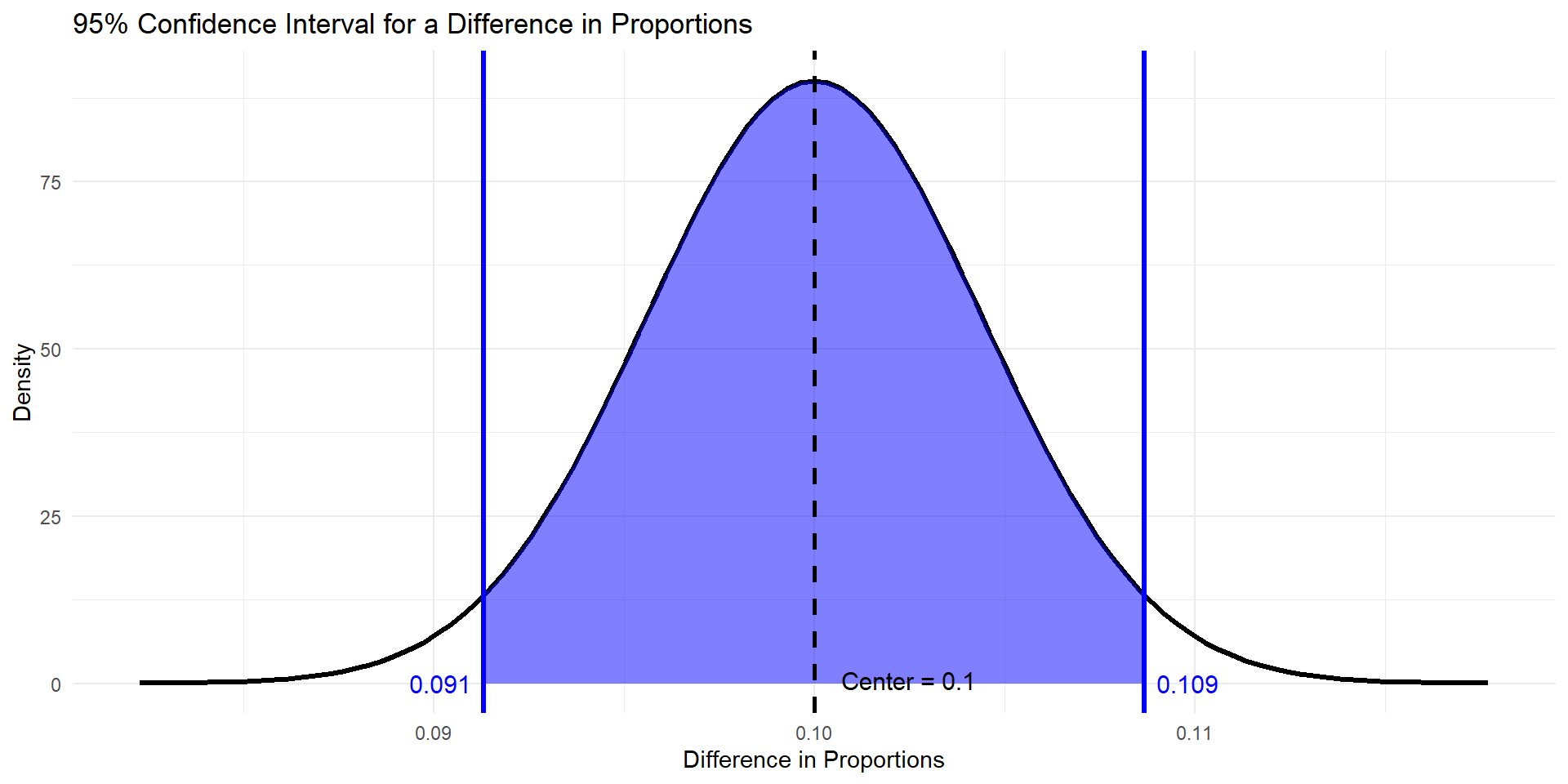 Now, letβs use our best guess for \(\pi_n - \pi_p\) with our estimated standard error to approximate the sampling distribution!